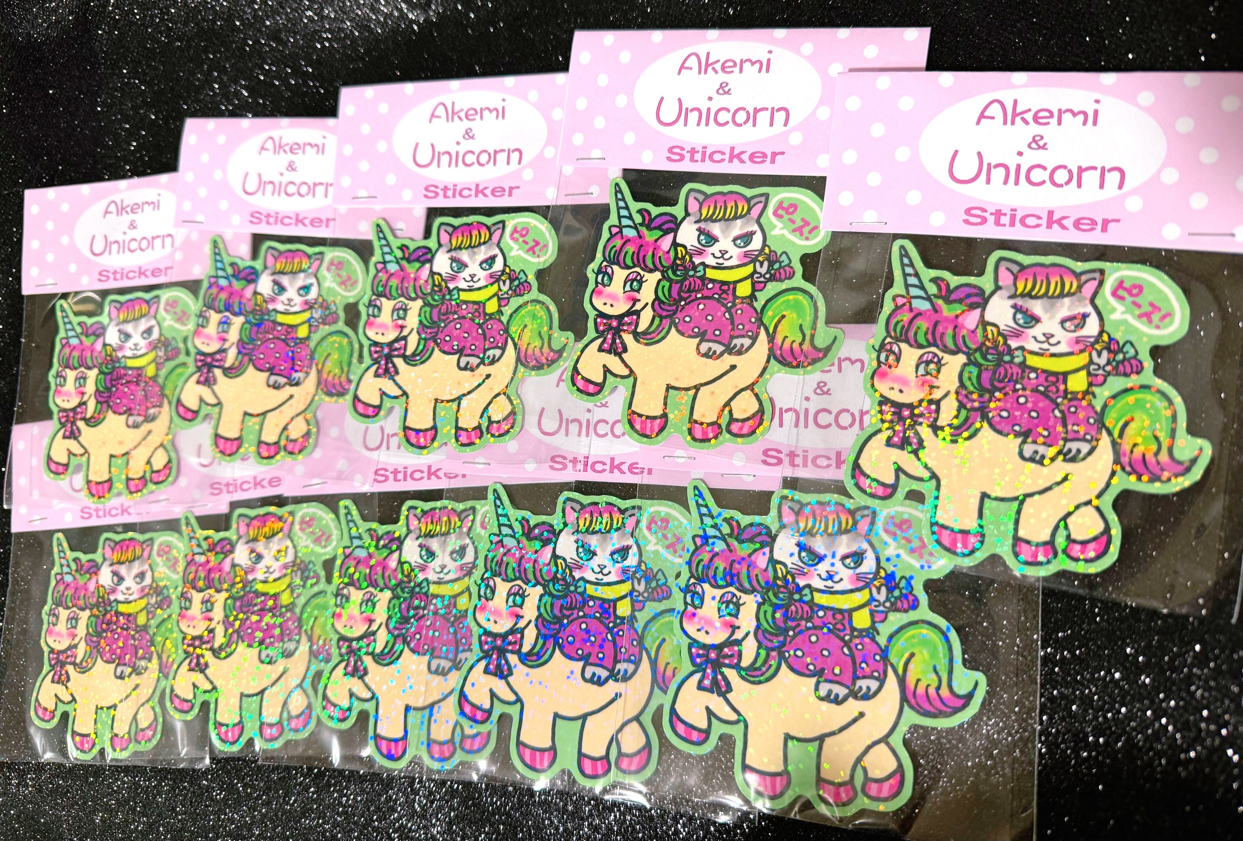 Akemiとユニコーン ダイカットステッカー